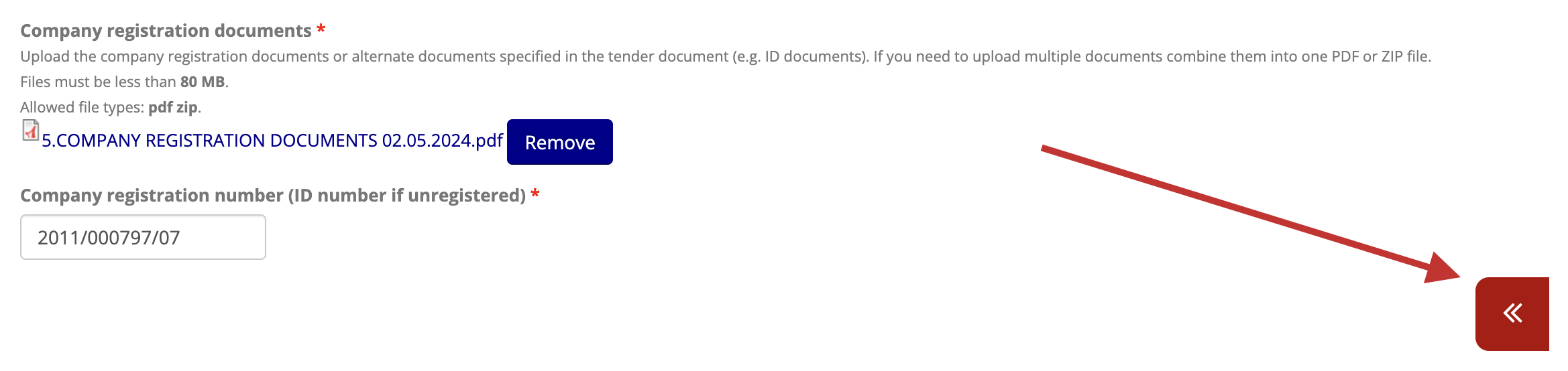 At the bottom right of each requirement in the TenderBox submission you will see a red tab.