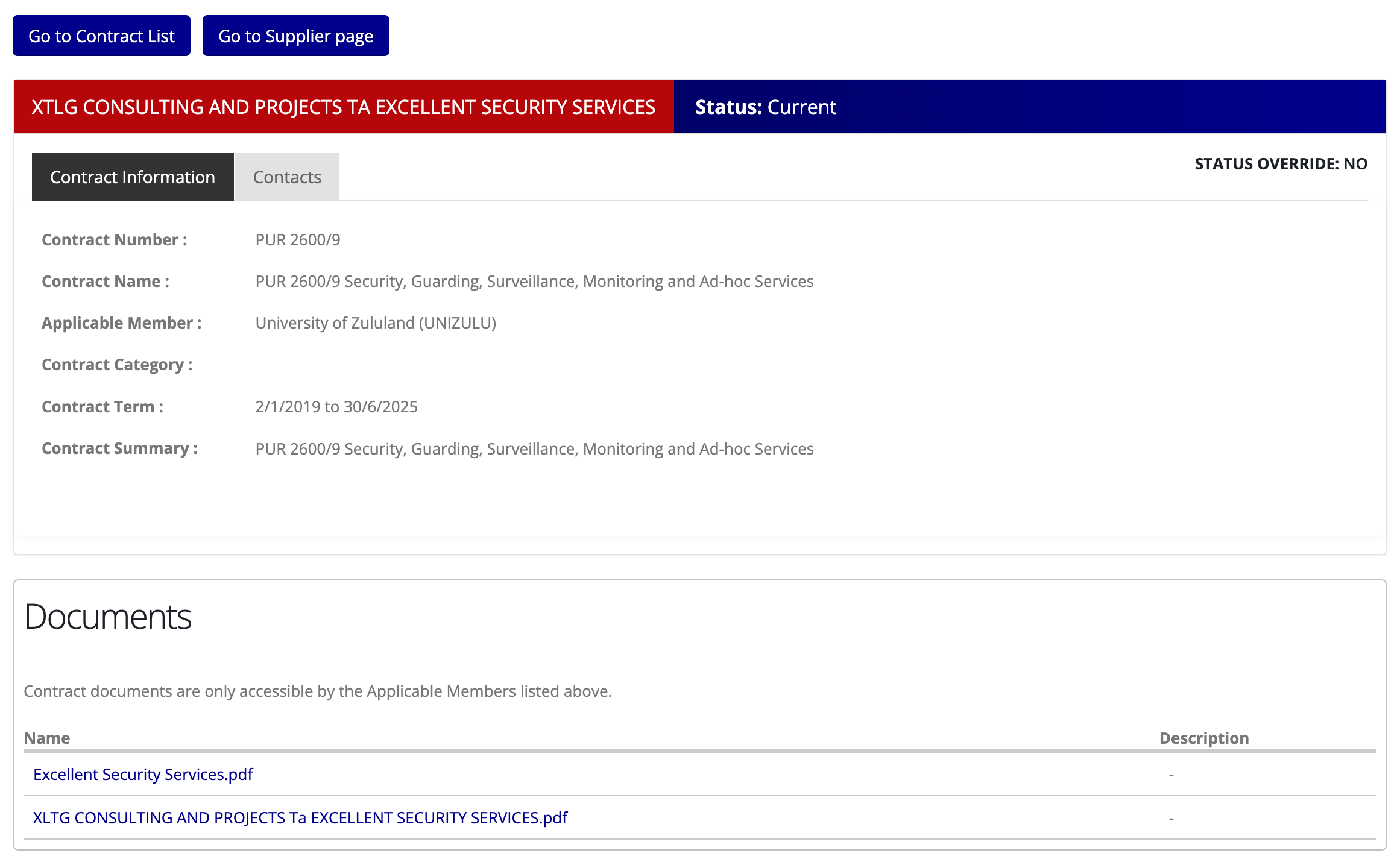 Note that information on this page will be limited if this is not one your organisation's contracts and is not an "All Members" contract.