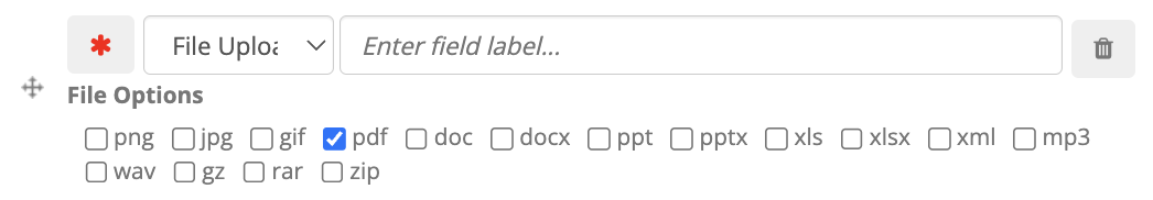 When selected, checkboxes are provided in order to specify which file types should be accepted.
