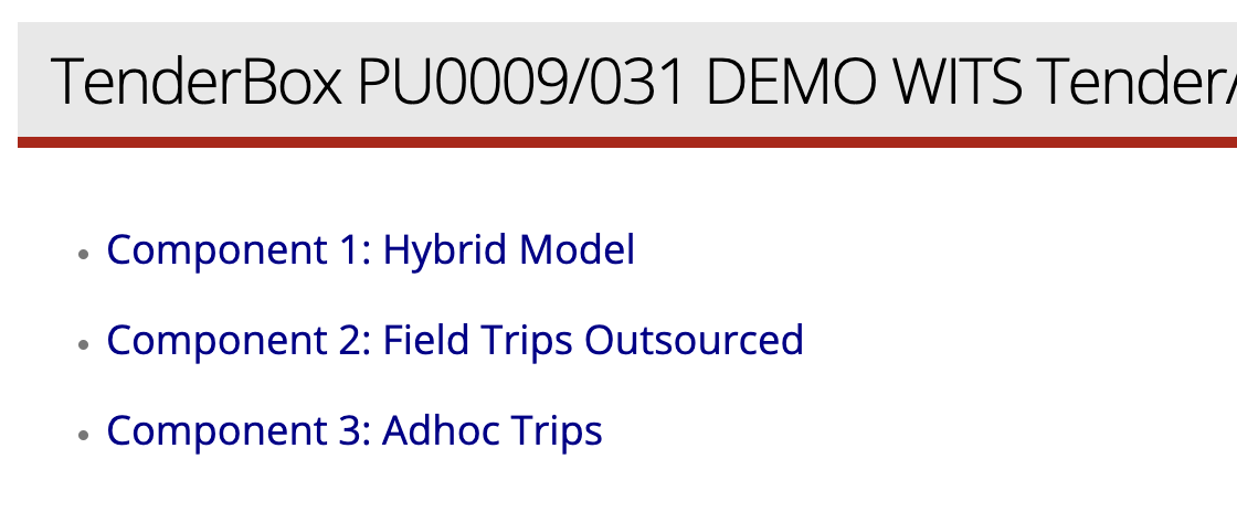 In the case of a TenderBox that involved multiple components, you will first be presented with a list of those component names, click the component name to access the corresponding Bid Assessment page.