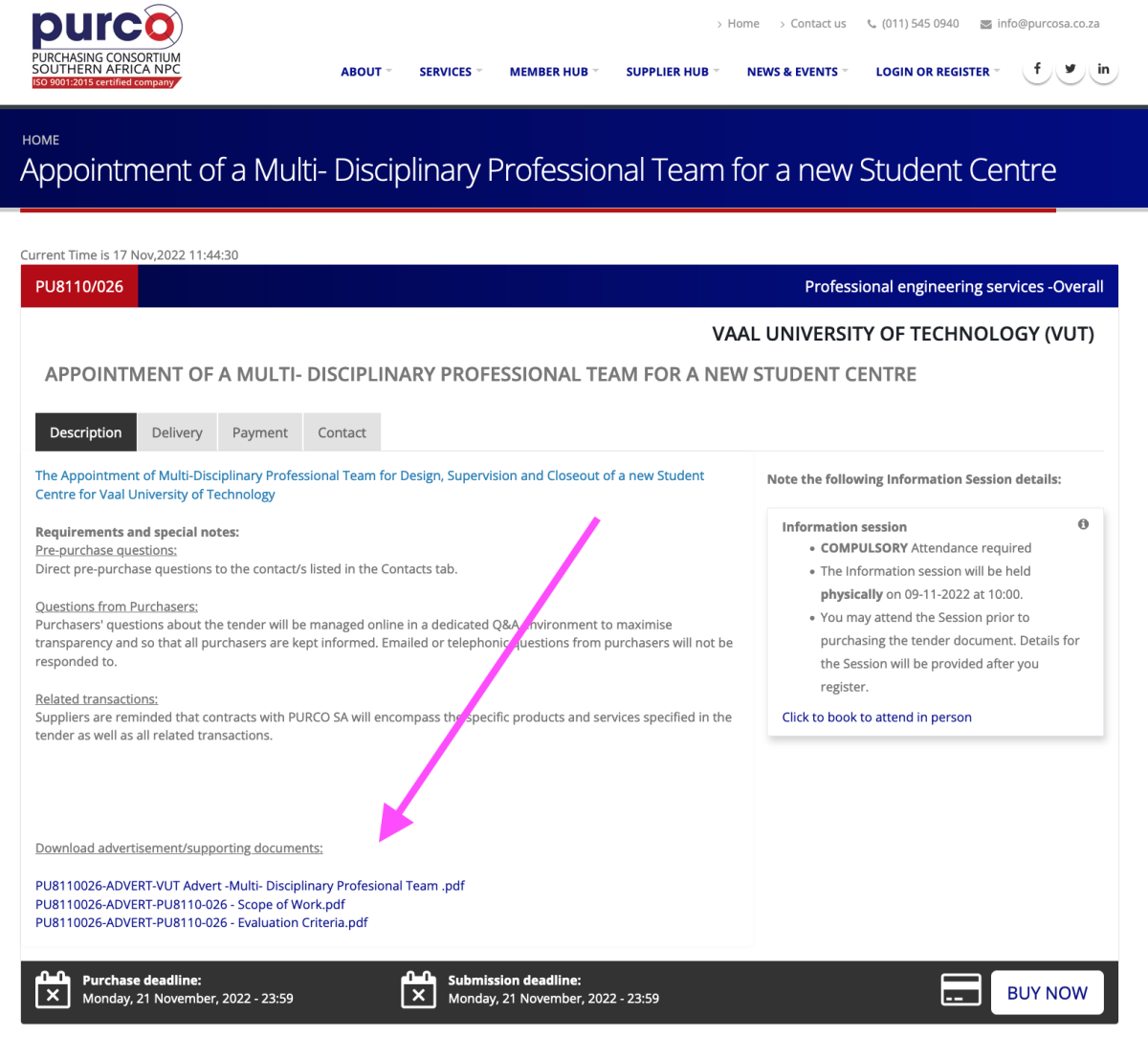 Upload the tender documents that suppliers will receive access to after making their purchase (or after registering in the case of a free tender).